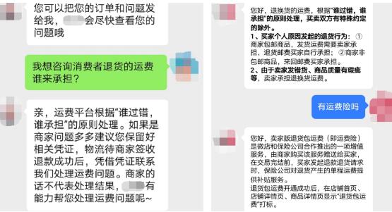 運(yùn)費(fèi)險(xiǎn)的保險(xiǎn)范圍是什么?在平臺(tái)網(wǎng)購(gòu)?fù)素浀倪\(yùn)費(fèi)承擔(dān)問(wèn)題究竟該如何判定?記者撥打了淘寶的客服電話,客服告訴記者,退換貨的運(yùn)費(fèi)秉承的是“誰(shuí)過(guò)錯(cuò)誰(shuí)承擔(dān)”原則,運(yùn)費(fèi)險(xiǎn)也只能保首重一公斤的運(yùn)費(fèi)。