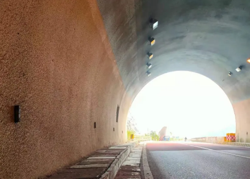 雷雨埡隧道內(nèi)大件運(yùn)輸車輛,目測距離隧道頂約1米。