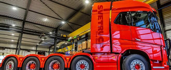 目前,該車已經(jīng)順利交付Svetruck公司并投入運(yùn)行。無論經(jīng)過哪里,豪邁的五軸布置和鮮亮特別的橘紅色車漆都能牢牢抓住大件運(yùn)輸車迷的眼球。