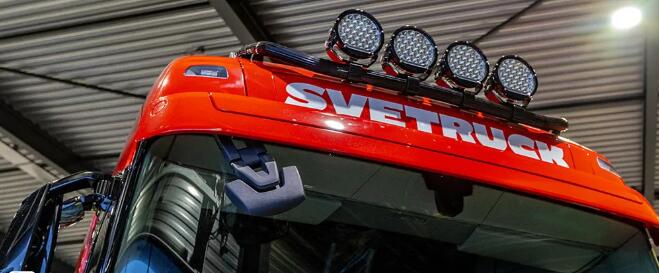 在大件包頂部,車輛也安裝了高亮LED燈,并附加了兩個(gè)沃爾沃原車尾燈,增強(qiáng)可見度和安全性。在條形LED燈的上方,SVETRUCK字樣被鏤空,視覺效果極佳。