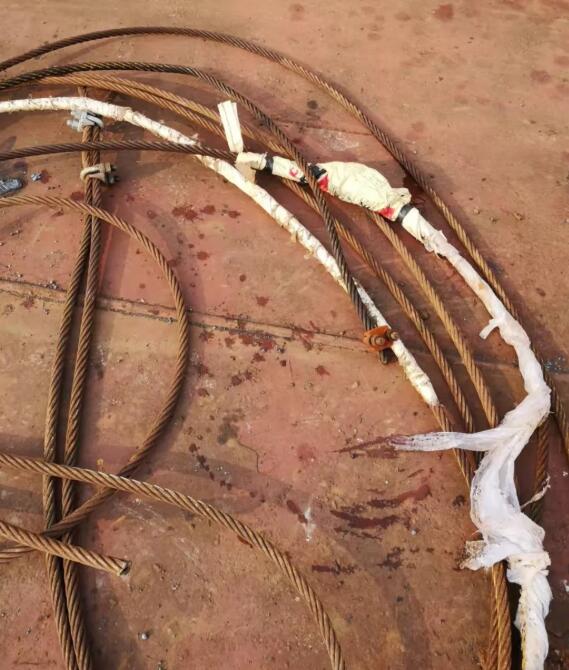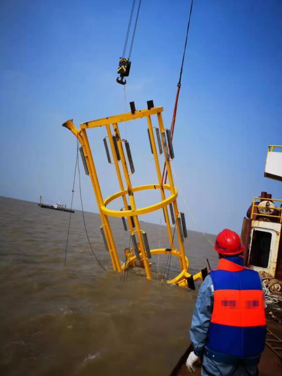 (某裝載海上風電套籠的船舶,因綁扎不牢導致套籠掉入海里)