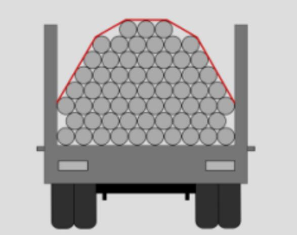 2.裝載包裝大件貨物且貨物寬度超過貨車側板時,應層層壓縫梯形碼放,四周大件貨物傾向中間,使兩側超出側板的寬度一致,宜采用端部交叉捆綁或雙交叉捆綁的緊固方法