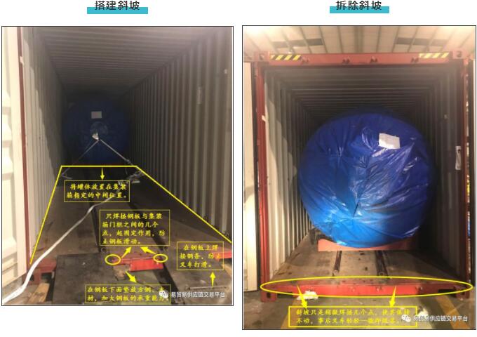 在集裝箱門(mén)上搭建斜坡,方便叉車(chē)進(jìn)入集裝箱內(nèi)部。