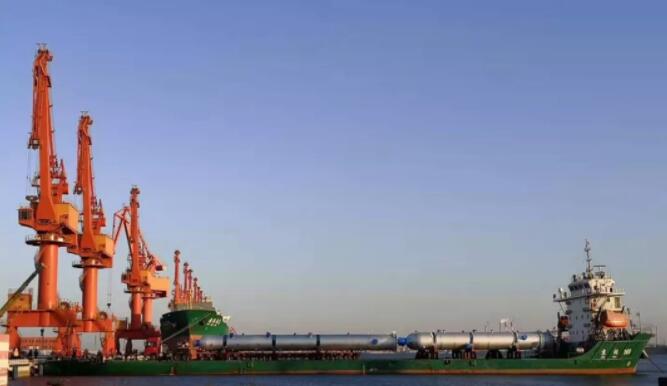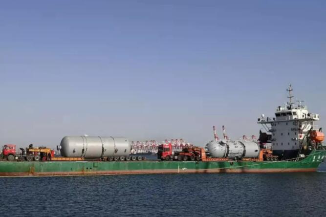 該公司結(jié)合駁船運輸及作業(yè)特點,利用牽引車將平板車上的3件設(shè)備從駁船上卸至碼頭,然后將另外2件設(shè)備移至駁船上,一次性成功作業(yè)5件化工反應器罐體,這是營口港區(qū)首次實現(xiàn)大件設(shè)備“滾裝滾卸”,也創(chuàng)下了單船裝卸大件數(shù)量新紀錄。