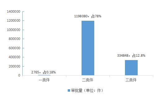 圖 2021年全國(guó)一、二、三類大件運(yùn)輸辦結(jié)量及占比